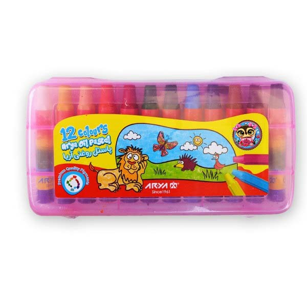 پاستل روغنی ۱۲ رنگ آریا که تولید شرکت آریا به عنوان برند برتر تولید لوازم التحریر در ایران است، دارای ۱۲ رنگ است که در یک جعبه پلاستیکی و شفاف بسته بندی شده است.این بسته بندی دارای رنگ صورتی برای دختران و رنگ آبی برای پسران است. درون این بسته بندی برای هر قلم یک قسمت طراحی و جداسازی شده است تا هر کدام از مداد های شمعی در جعبه ثابت شده و تکان نخورند.پاستل روغنی، نوعی قلم است که از موم ساخته شده و از آن برای نوشتن، نقاشی، رنگ آمیزی و دیگر سبکهای تصویرگری استفاده می شود. پاستل، از ترکیب رنگدانه، چسب موم و نوعی روغن غیر قابل خشک شدن ساخته می شود.پاستل روغنی ۱۲ رنگ آریا دارای بدنه شش ضلعی بوده و به همین دلیل در استفادههای طولانیمدت دست کودک شما را خسته نمیکند و به آن آسیبی نمیرساند. همچنین شکل ششضلعی آن مانع از لیزخوردن و غلطیدن آن روی میز می شود.پاستل روغنی ۱۲ رنگ آریا داری لیبل می باشد که مشکل کثیفشدن دست را در هنگام کارکردن با پاستل حل کرده است. همچنین مانع از لیزخوردن آن در دست میشود.